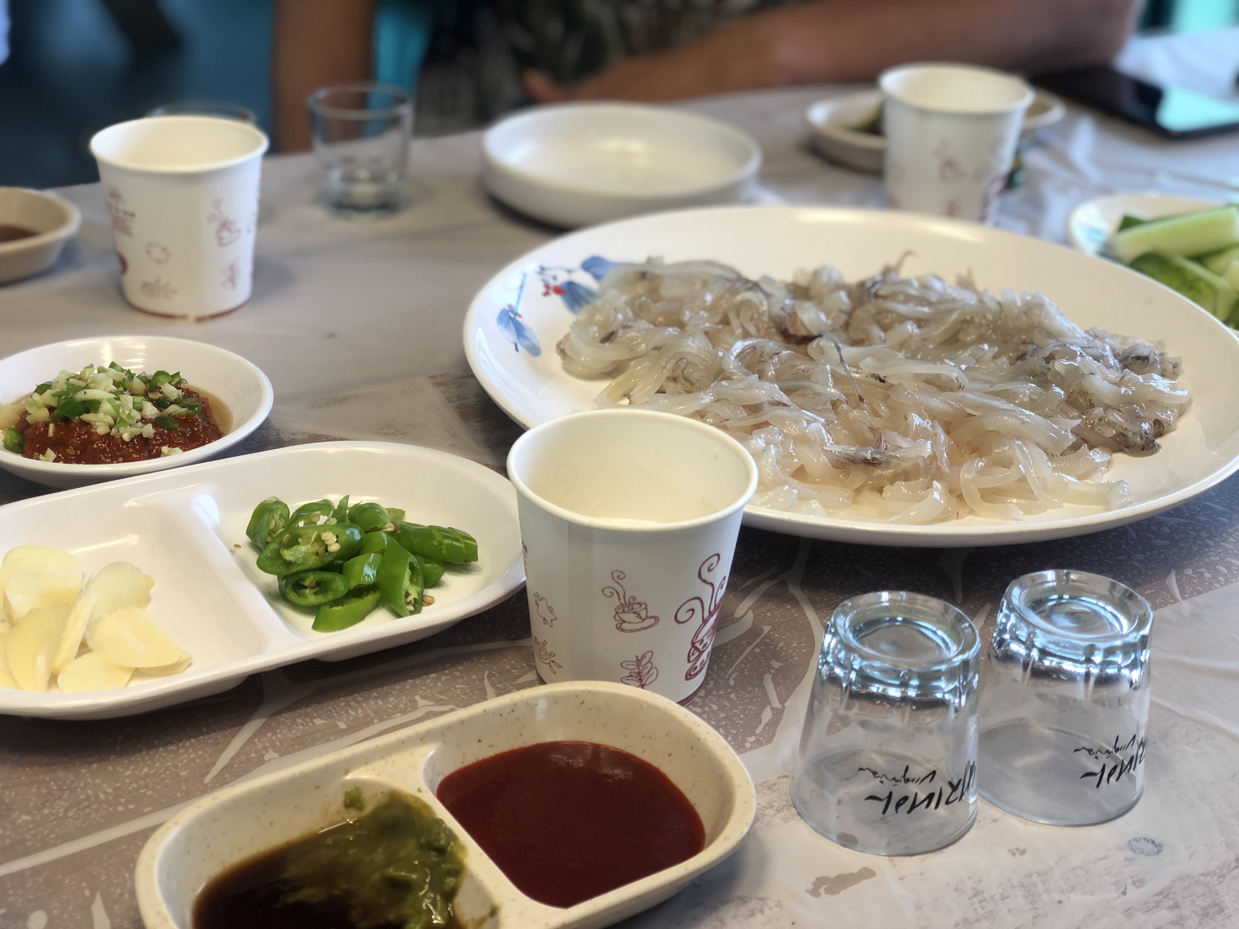 저기 횟집은 밑반찬이 없습니다. 그냥 다 해산물.... 감동의 도가니 입니다.