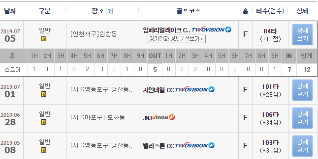 골프존은 통상 8번 쳐봤는데 그중에 84타가 나왔네요..