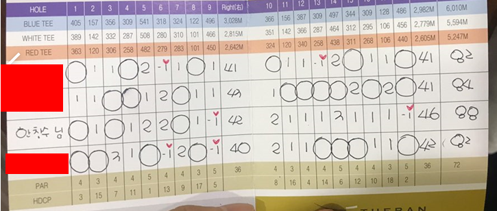 그린 스피드도 느려서.. 오늘 퍼터 망했네..라는 생각이 지워지지 않습니다.