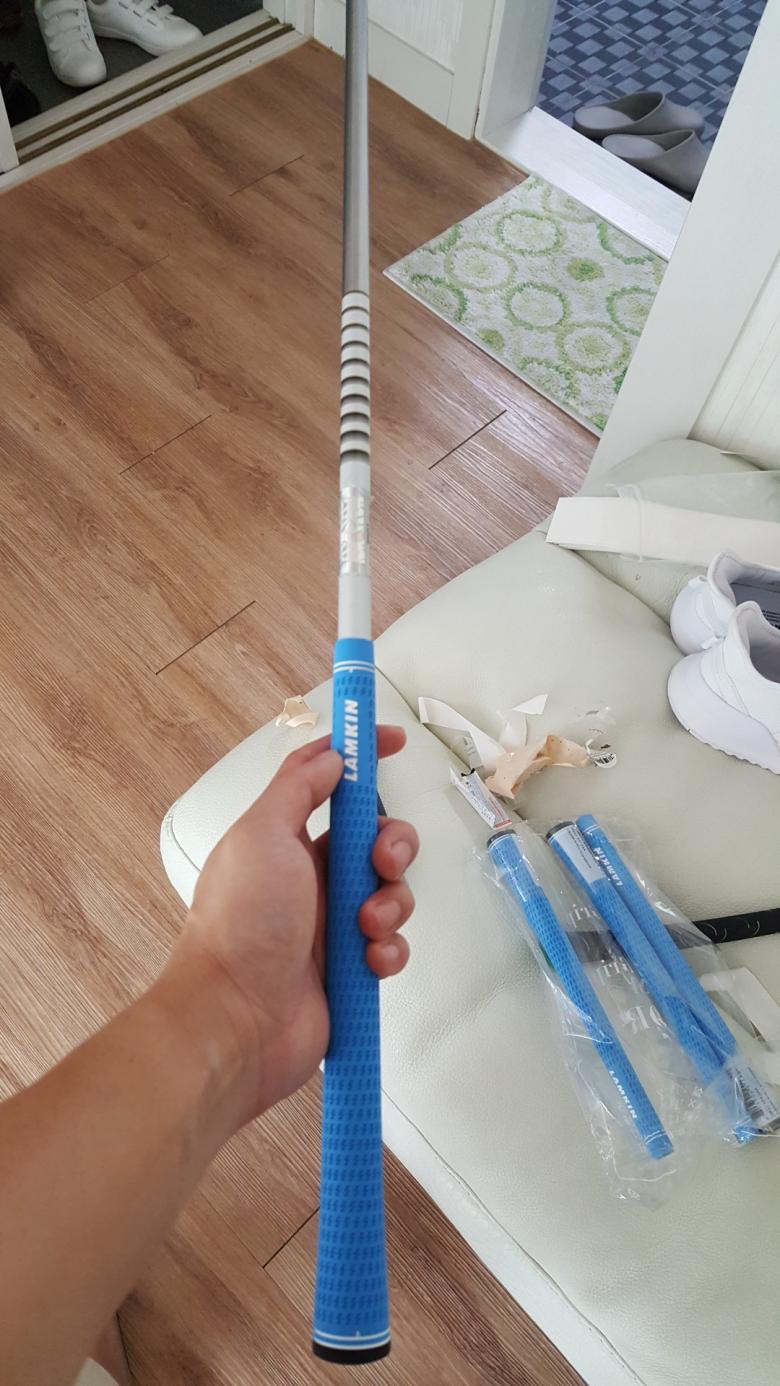 중간정도 넣고 그립끝을 벽에 대고 샤프트로 꾹 눌러주면 편해요 |