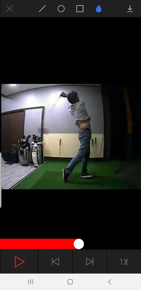 왜 그럴까 생각하다가 임팩트 후, 몸이 왼쪽으로 너무 도는거 같아 헤드 직진성을 위해 몸을 좀 더 뒤집습니다.
