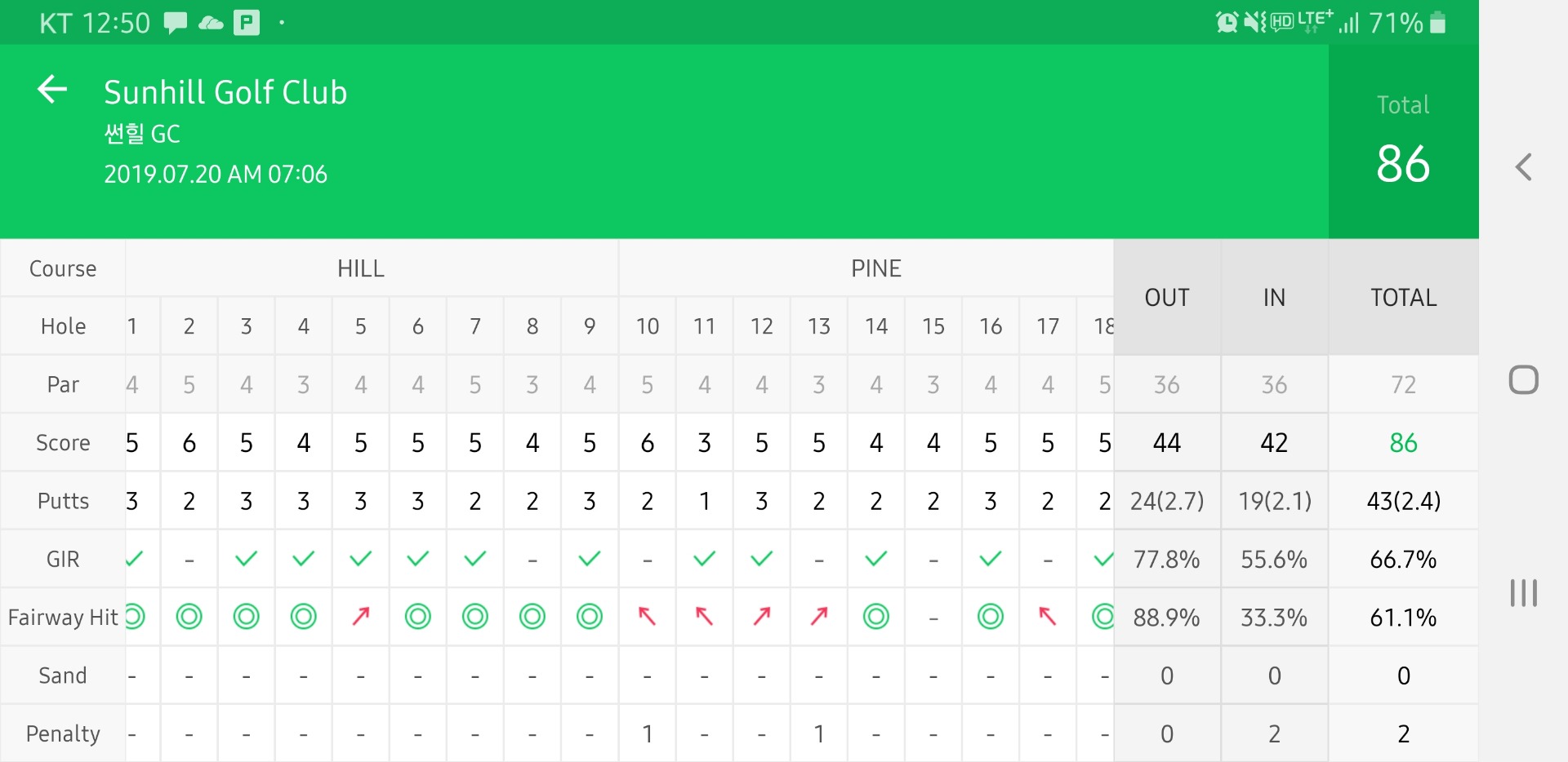 전반에 퍼팅이 많았는데, 1~3m 숏퍼팅 놓친것도 많긴한데 아이언이 다 당겨져서 태평양 온을 하니 3펏을 6번이나 했네요.