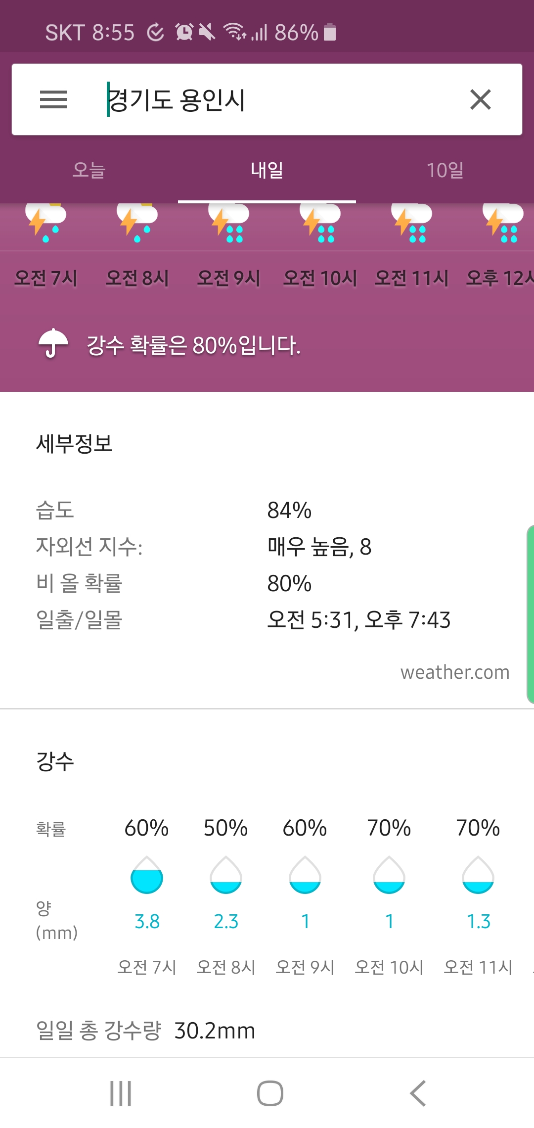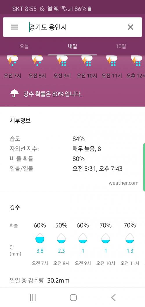 오전 강수량은 많지 않아서 치실만 하실 겁니다.
