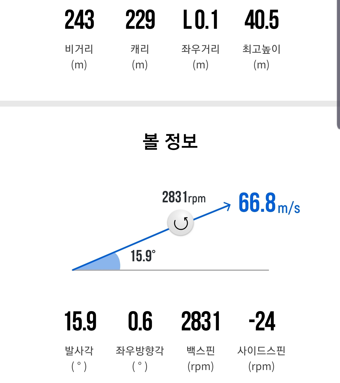 볼스피드 더 나오고, 탄도는 낮습니다.