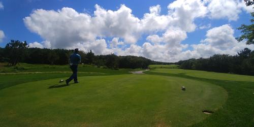 오늘 날씨는 티샷 시점에는 흐렸지만 몇홀지나니 좋아졌고 바람은 조금 있어 나름 선선한 란딩이었습니다.