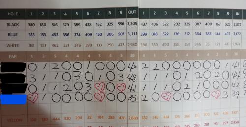 헐... 아마추어 수준이 아니신 거 같은데요. 스코아카드가 ㅎㄷㄷ입니다. 막판 트리플이 언더파를 겨우 막았군요 ㅠ