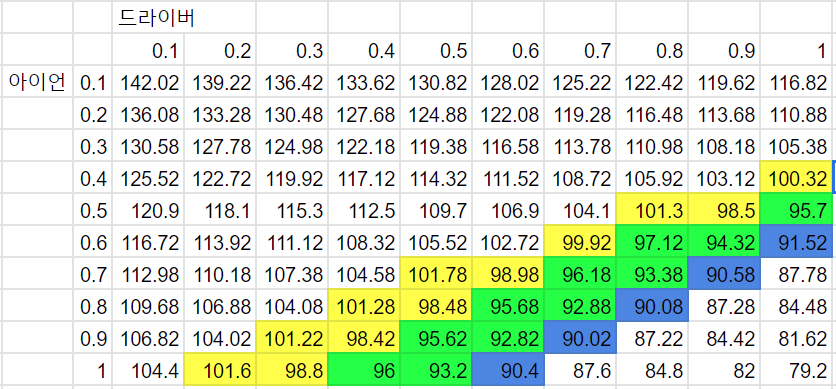 (몇번 더 추가하려고 했더니, 0.1, 0.1에서 200타이상 나오게 되네요. 그래서 양파룰에 의거 144점은 넘기지 말자, 두번만 계산했습니다.)