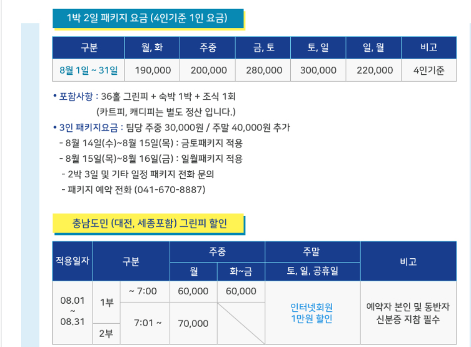 일단 저는 요금표 상으로 일/월 36홀 1박2일 가능하면 가보고 싶은데,