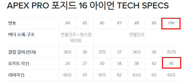 저는 피칭 46도에 52-56 웨지입니다.