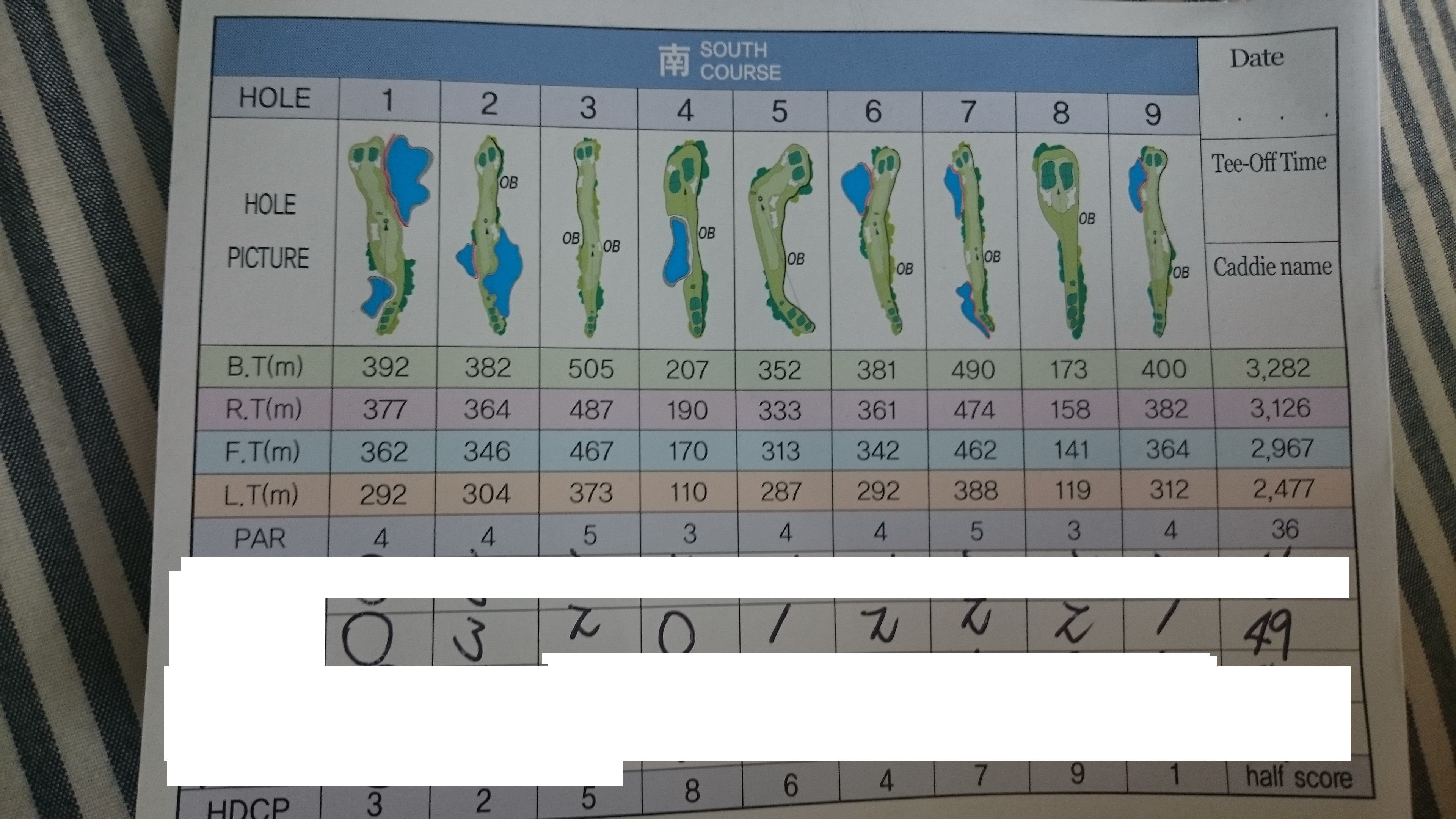 의미 없는 점수에요~ 첫홀하고 마지막홀 다 더블했는데 파로 적어주셨네요ㅎ다 더하면 101타ㅠ |