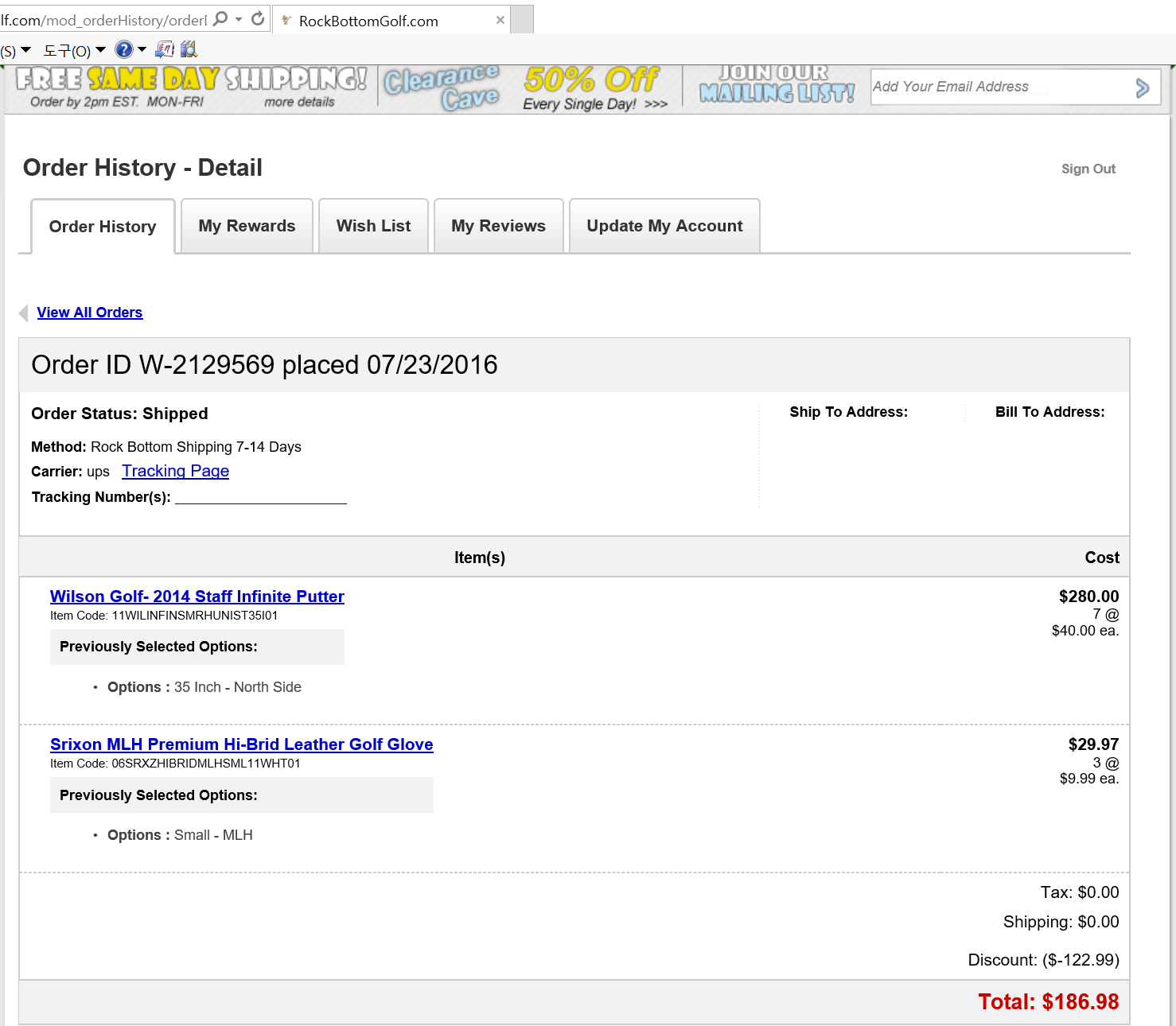 퍼터 7개와 장갑 3개 가격이...ㄷㄷㄷ 5%코드도 먹고..