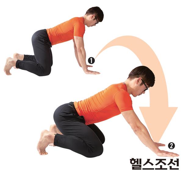 내민다는 느낌으로 바닥쪽으로 상체가 내려가시면 더 좋은 효과를 보실 수 있습니다.