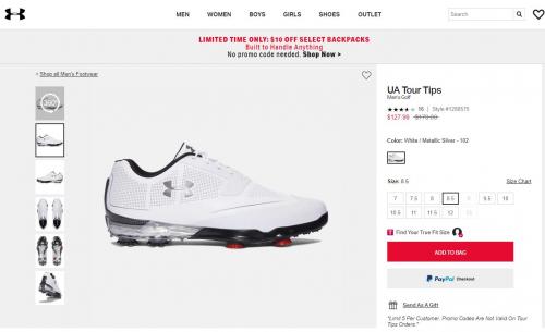 언더아머 공식싸이트에는 169달러짜리 할인해서 128달러 좀 하고.. 색상은 힌색+검정바닥..미국내 무료배송정도 되네요..