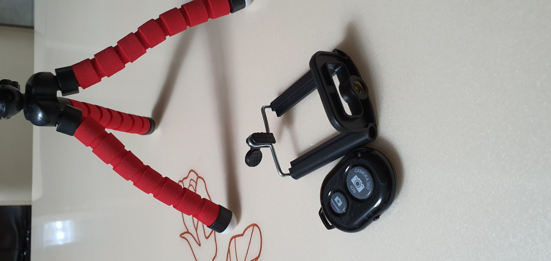 고프로짭을 체결해놓을수 있게 카메라 슈도 달려있고..핸폰을 고정할 수 있는 연결 부품이랑 리모콘도 같이 들어있네요.