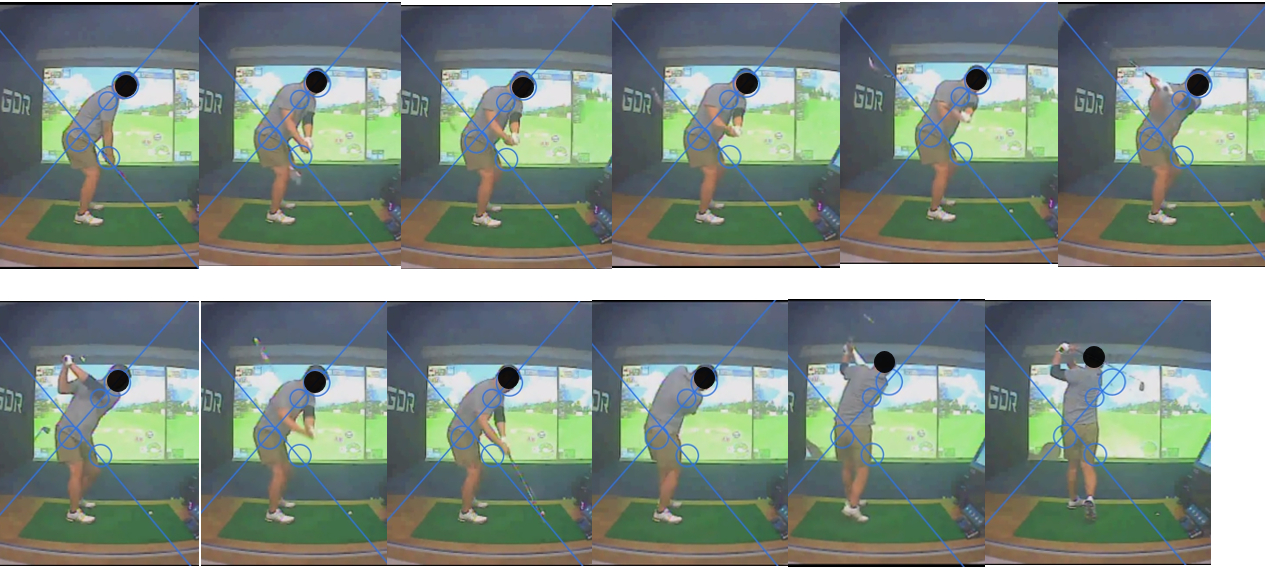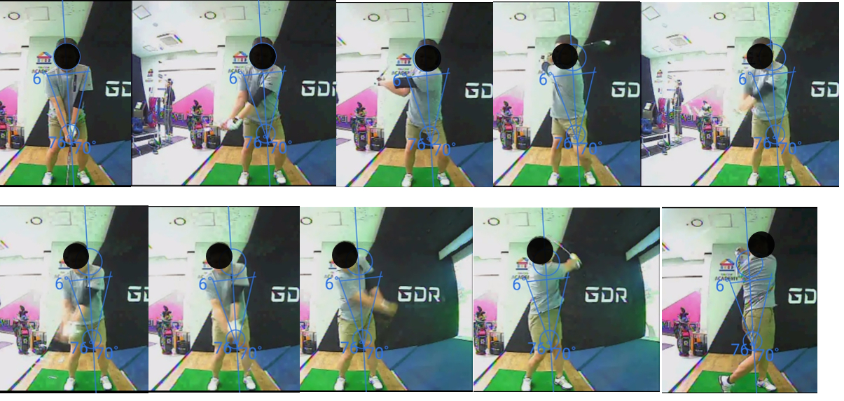 5. 볼 임팩트시 헤드업(?) + 움찔 하듯이 어깨가 위로 올라간다