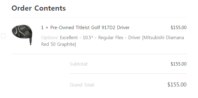 그러다 눈에 꽂힌 917D2 드라이버... 락바텀에서 excellent 컨디션, 155불짜리가 제 마음에 들어왔습니다.