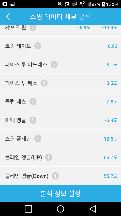 물론 이 데이터를 기반으로 제 스윙의 교정을 할 방법은 모릅니다. 그저 재밌을뿐..ㅋㅋㅋ