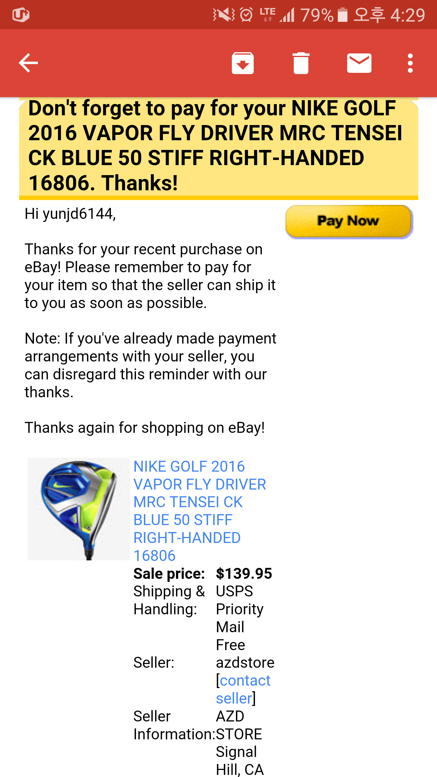 근데 오늘 메일이 왔는데 139달러로 결제하라고 하네요