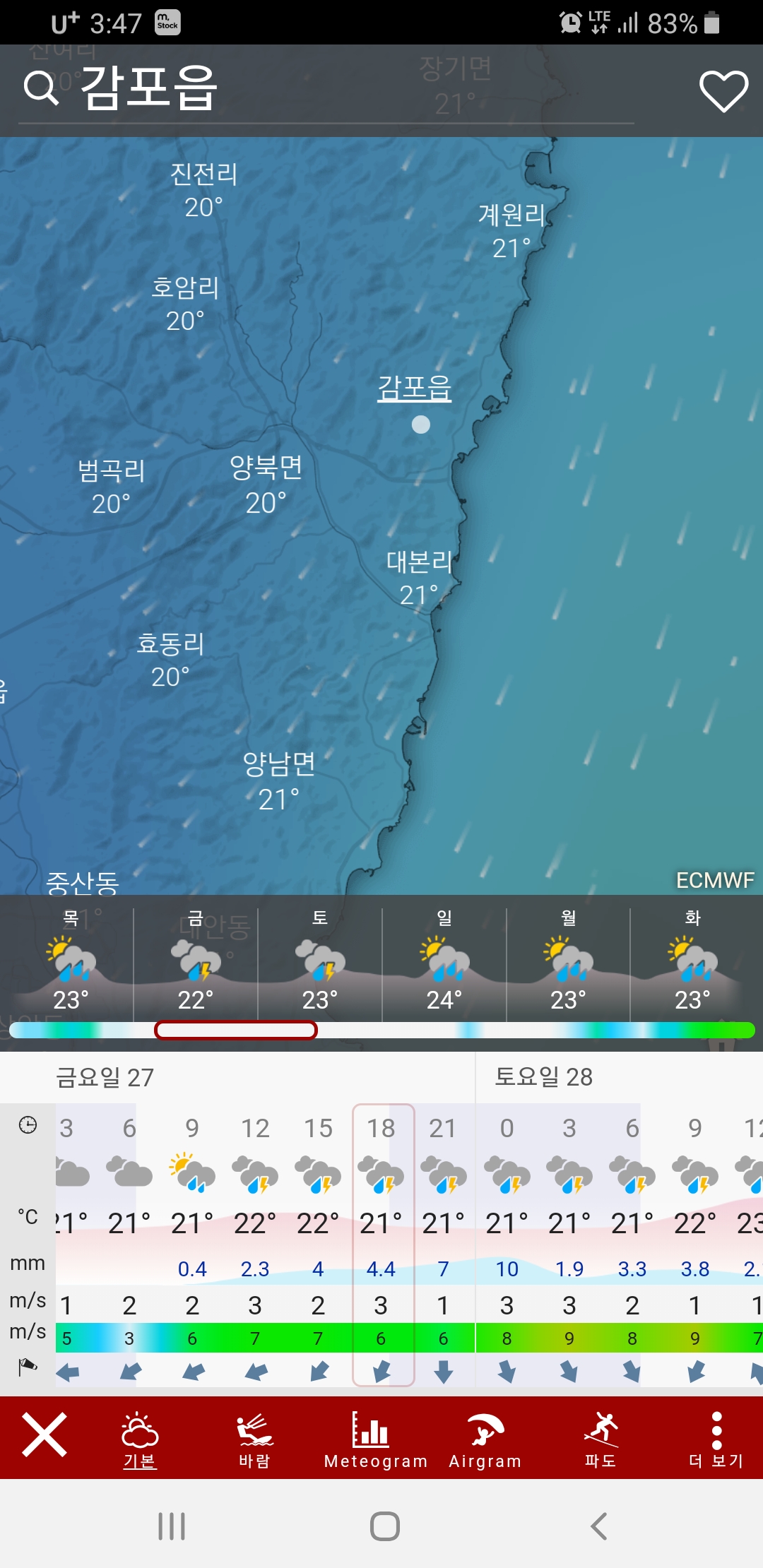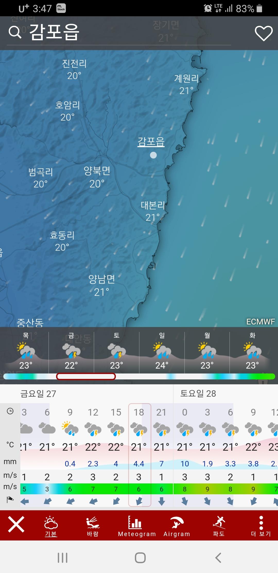 동경주지역은 예보가 잘 안맞더라고요