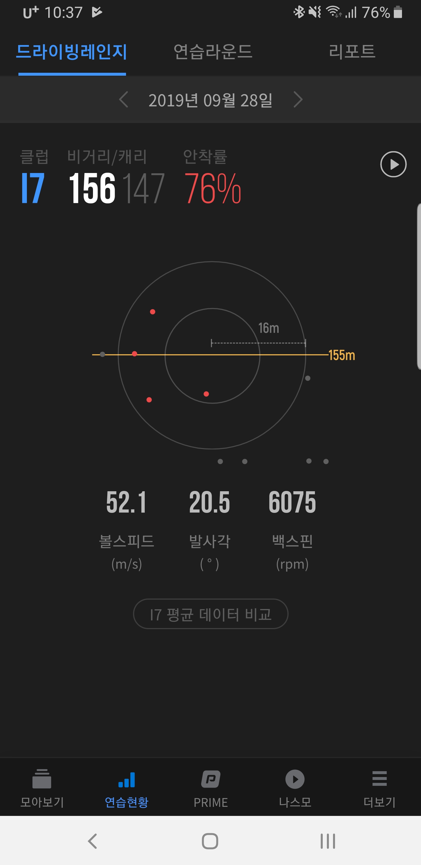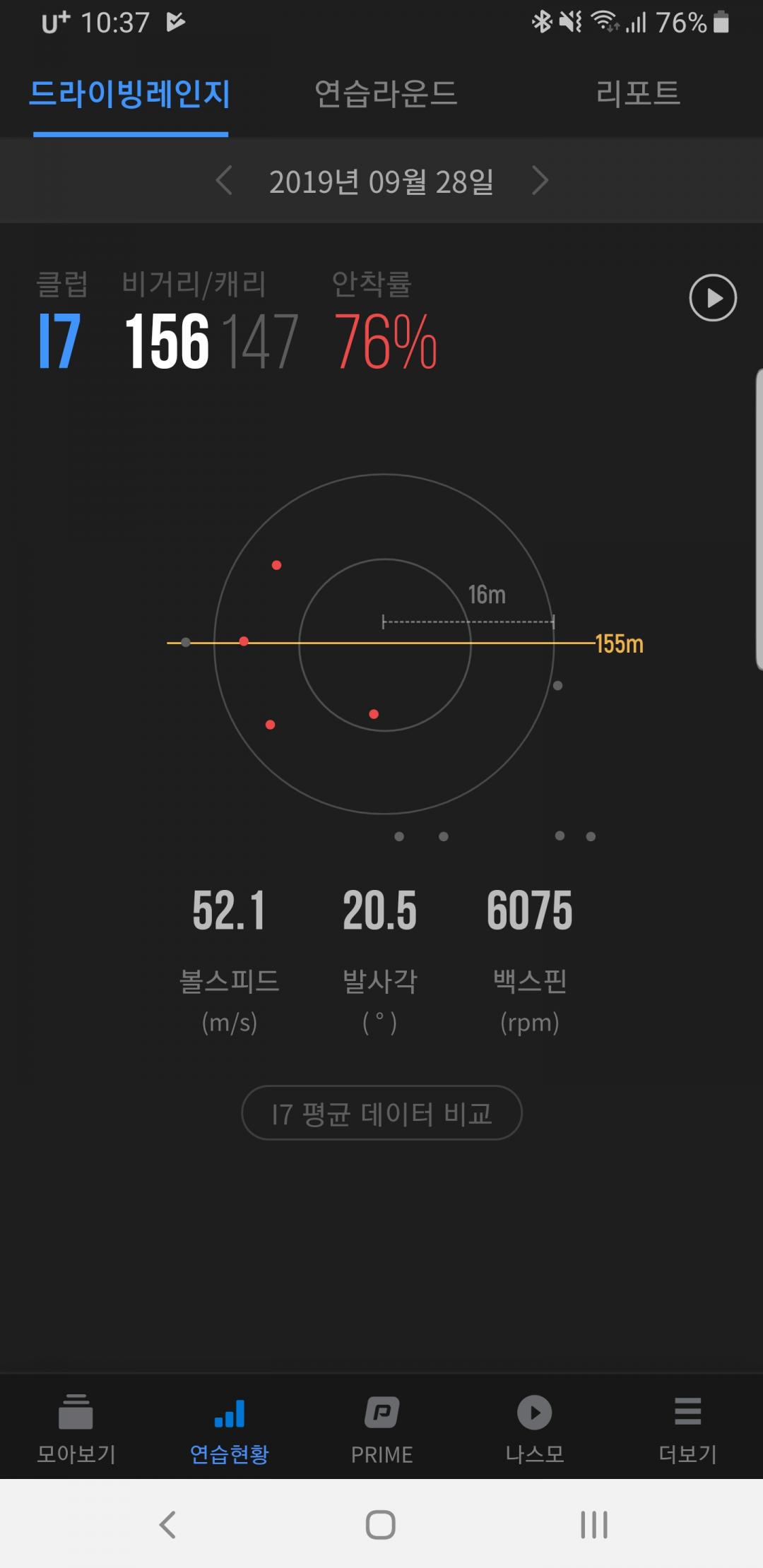 7번 아이언(클랙식로프트)로 대략(GDR 기준)