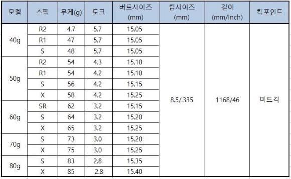 BB랑 같은 라인에서 좀더 아래쪽 저탄도에 포진하고 있는 페이드 계열 샤프트군요 ㅎㅎ