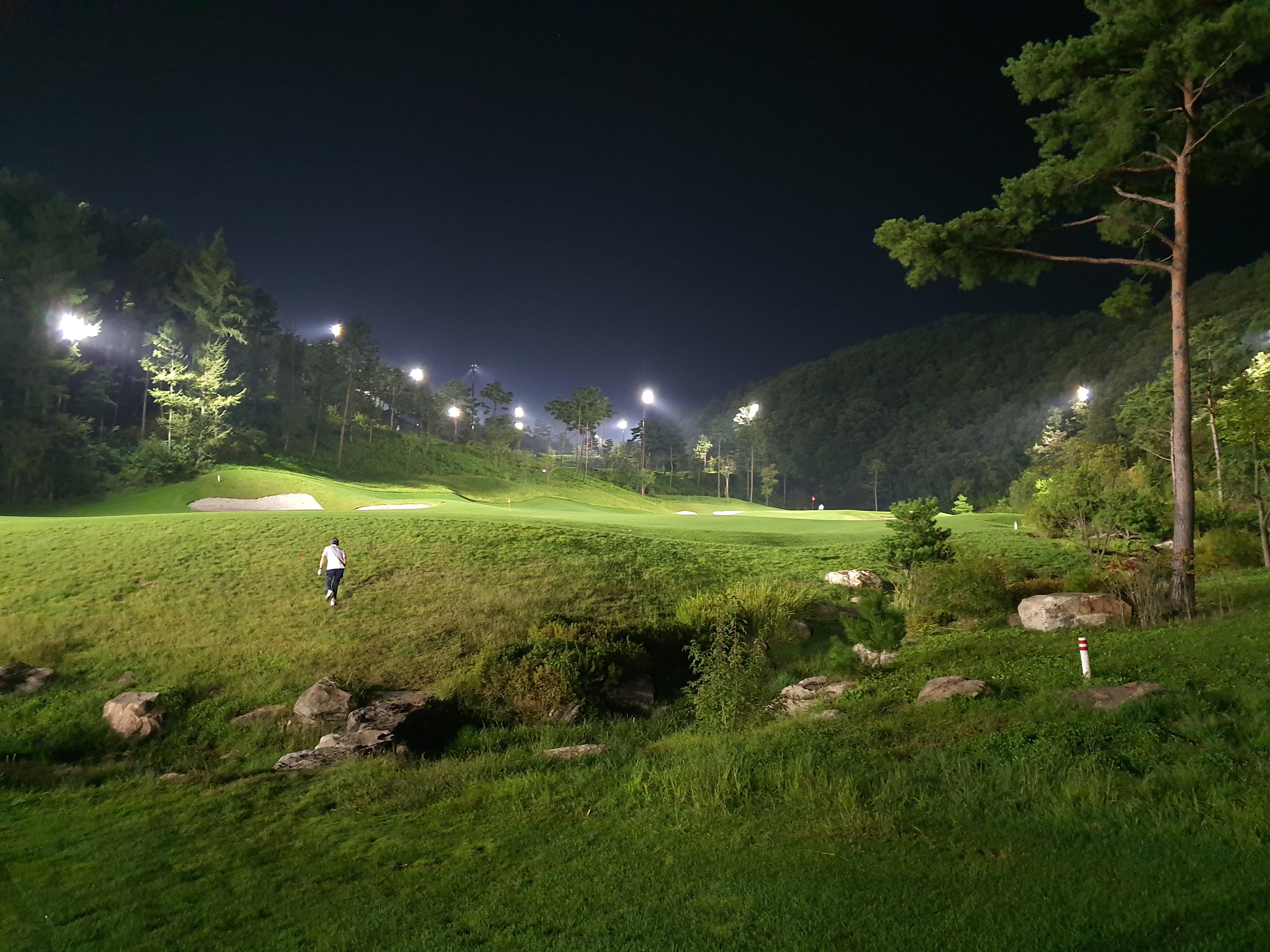 저희는 레이크-데일로 돌았는데 산 북쪽 골짜기에 자리잡은거치고는 기온 하강도 그리 급격하지않았고 (10시쯤 끝났는데 계속 반팔입고 쳤습니다) 그린 상태도 야간치고는 나쁘지않았고요. (2.2~2.3정도) 페이웨이가 지금 천공작업이 돼있는 상태고 페어웨이 잔디 밀도와 잔디 길이의 균일도가 좀 떨어지는 감이 있습니다만 그정도는 봐줄만합니다. (참고로 켄터키블루 계열의 양잔디입니다)