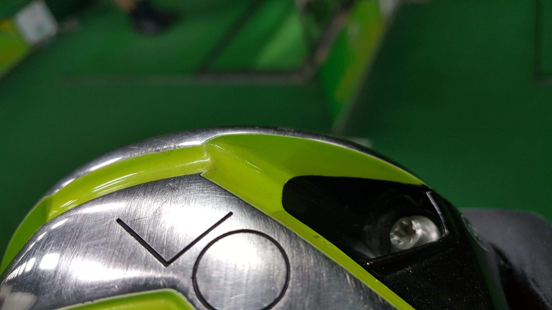 중앙에서 연두색 부분 좌측으로 그리고 우측으로 금이 가있는데 페인트가 깨진걸까요 아님 헤드가 깨진걸까요?? 타구음이랑은 비슷한데 저걸 발견하고는 심적으로 그런건지 정확성이 좀 떨어졌습니다