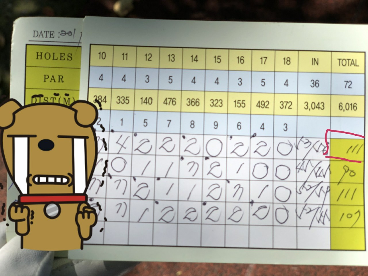 1234번홀 정신없이 쫓겨서 치고 스코어 이제야보니 양파가 두개