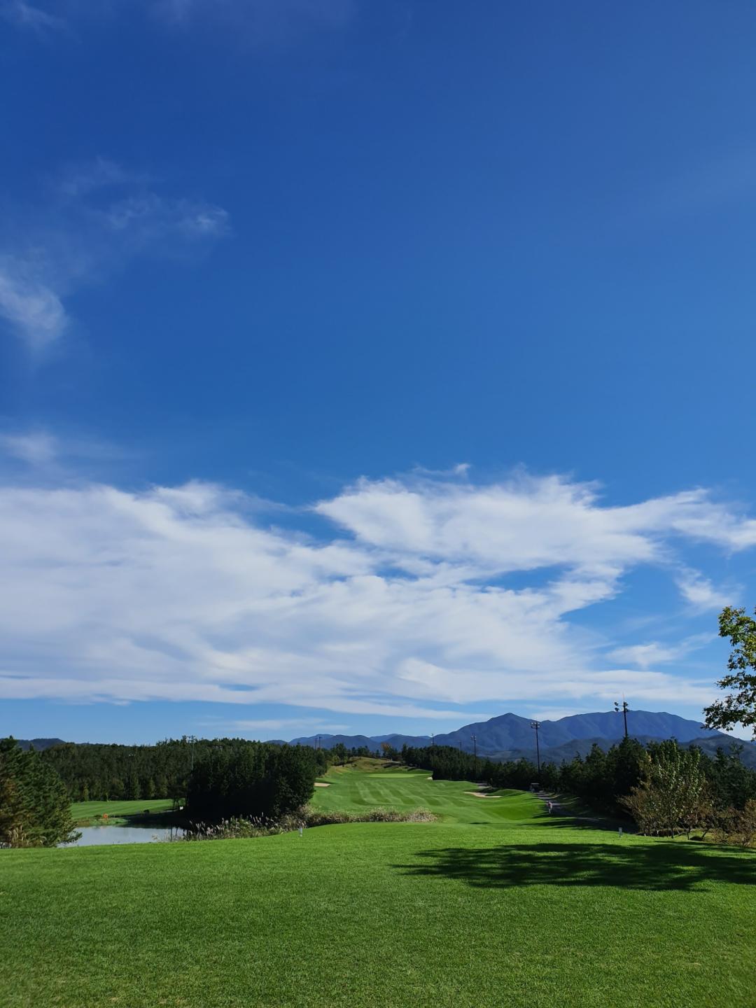 첫홀이 파5였는데 티샷은 힘빼고 잘 쳤고.세컨까지 잘 보내놨는데...