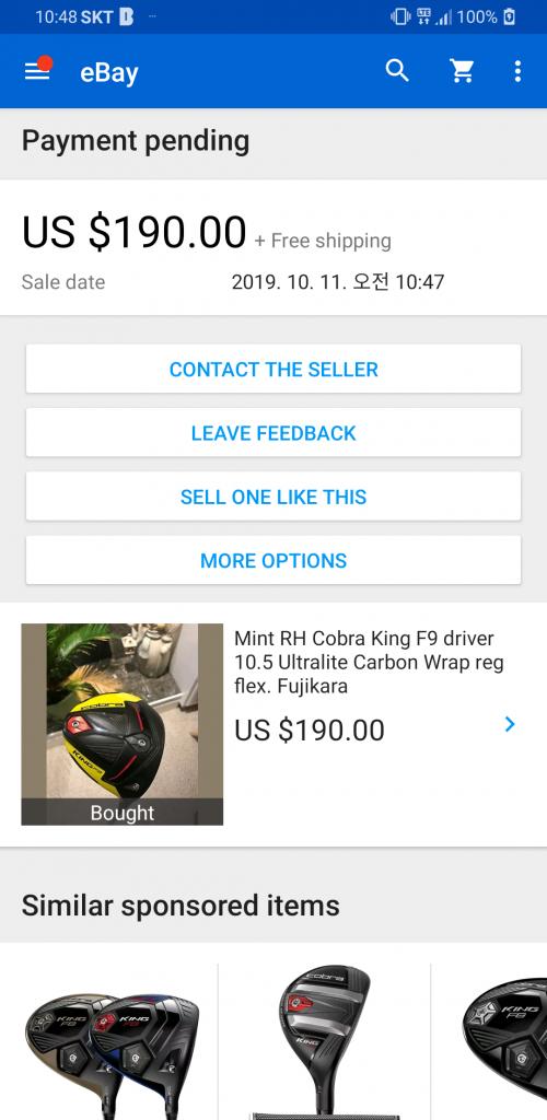F9드라이버를 써보고싶어 계속 눈팅중 190불에 민트라말하고 베리굿등급정도로 보이는 물건이 보이길래 잽싸게 구매했습니다.