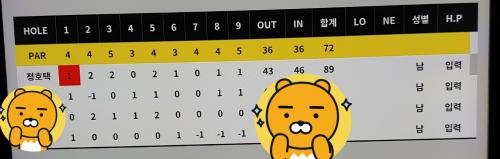 결과는.. 고구마 물없이 먹은듯 답답한 느낌이지만 첨으로 89타라는 앞자리 8을 보게되었습니다.