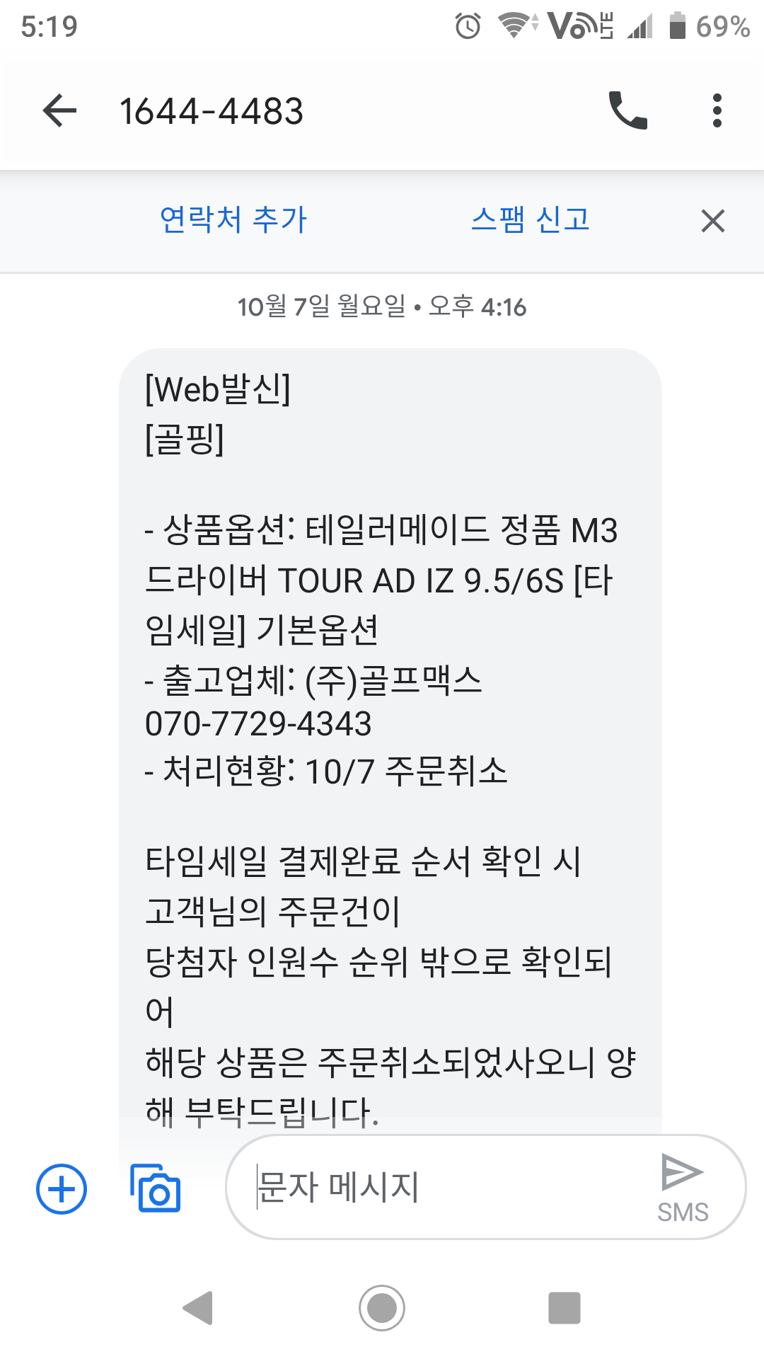 업체 번호 알려달라 해서 통화했더니 골핑 고객센터랑 같은 소리 반복, 재미있는건 재고 없는데 있다고 해서 판매되었다고 시인, 같은 물건 못구하면 주문 취소 해야 한다고 함