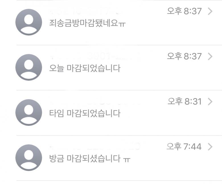 전화를 해주는 분도 계시던데 보통은 문자로 마감입니다... 하고 끝이더라구요.