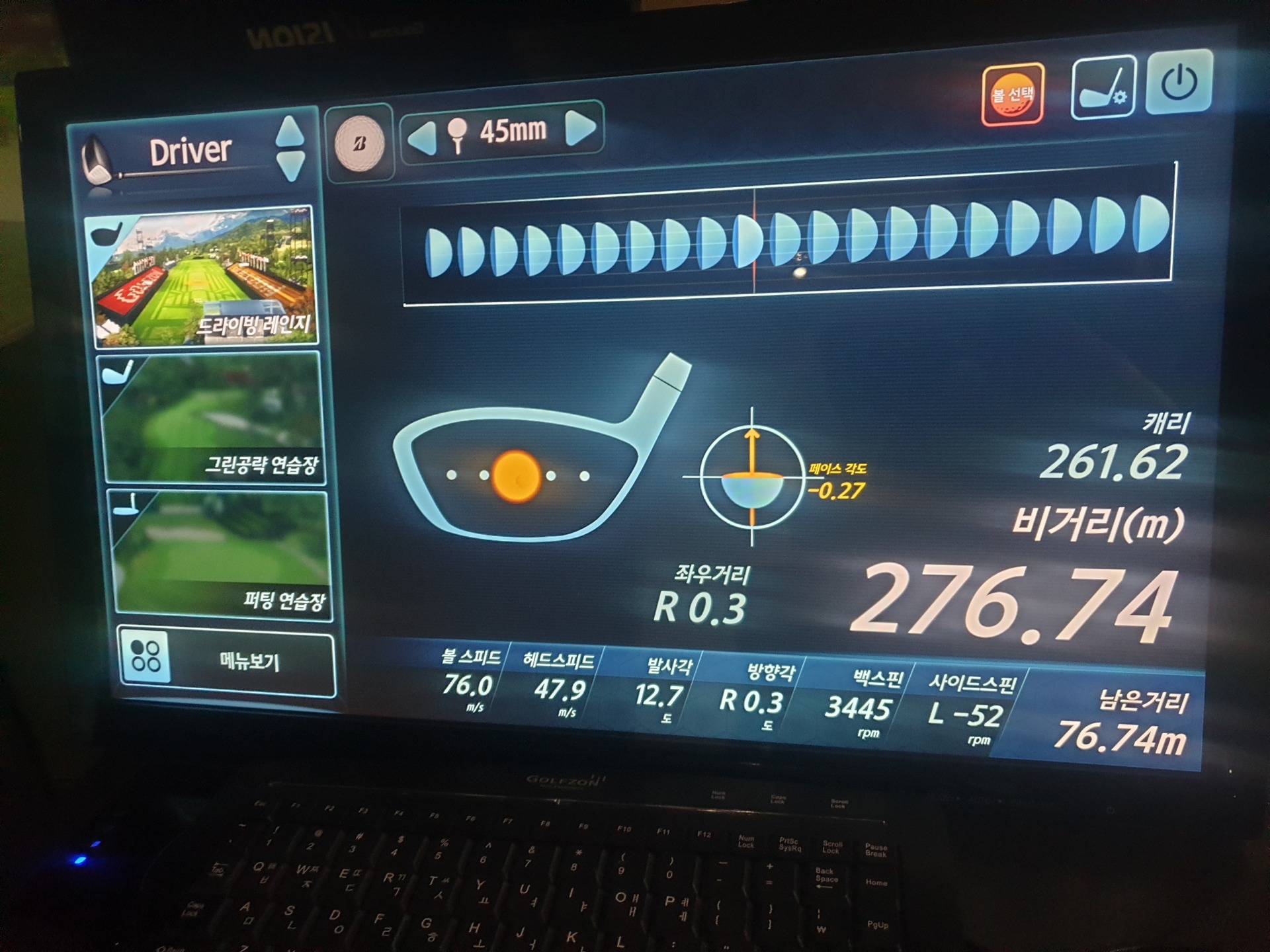 일반 스크린 똥볼로 하면 평균 72, 최대 73.8m/s가 아직은 한계네요. ㅎㅎ