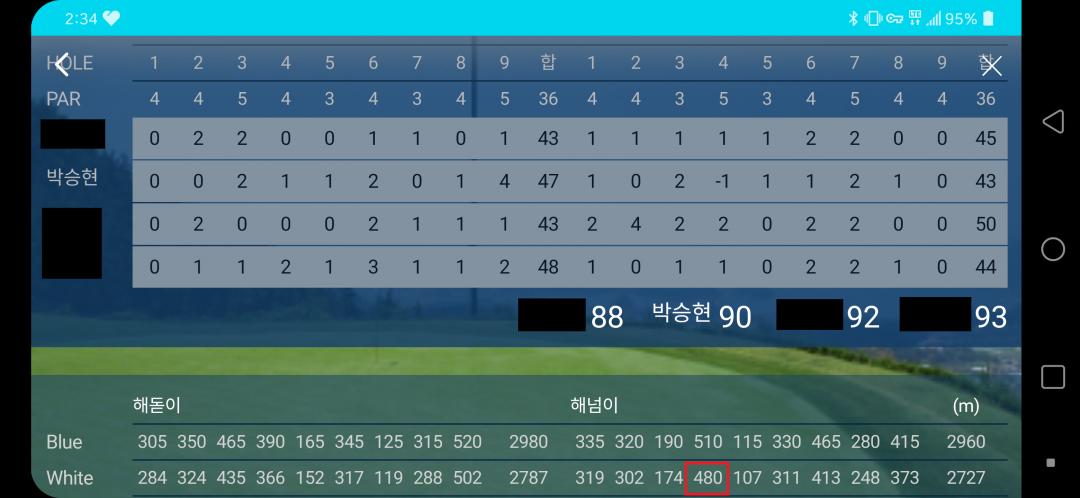 전반에는 어떻게 쳤는지 경치가 어땠는지 기억이 없습니다~