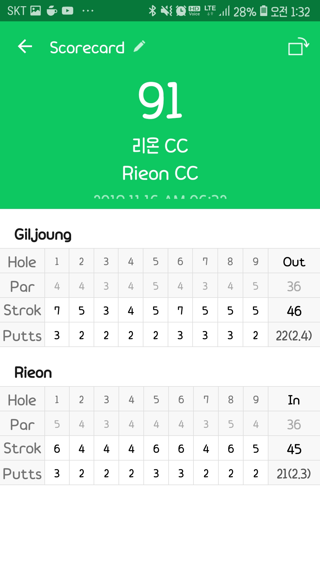 얼마전까지 드라이버 비거리 안나와 징징대고 있었는데 밧줄드릴로 리온cc에서 난생처음 파 5 2온을 두번 했는데 두번다 파로 마무리ㅜㅜ