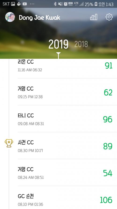 지금 레벨에서는 드라이버 오비가 많긴하시네요. 지금에선 2-3개정도 나야하고 3-4개 나시니 다른 무언가가 잘 막아주고 있는 양상이에요. 아마 세컨어프로치가 잘 되시는 것 같은데요. 드라이버 좀더 연마하시고 퍼팅은 계속 손봐야 안정적 80대 진입하실 걸로 생각됩니다. | ||