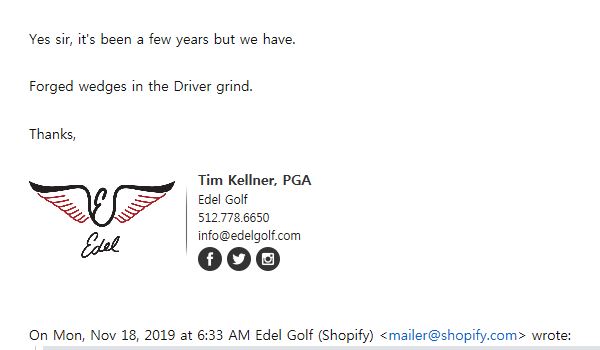 에델 k-spec 웨지 가품인지 궁금하여 본사에 메일을 보냈습니다.