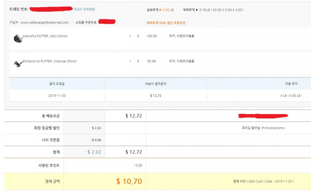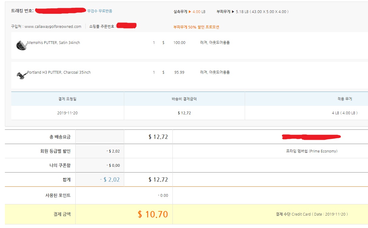 가지다 이용하다가 핵직구를 통해 협력사 웨지 2개를 배송 시켰는데 15불 나왔습니다.