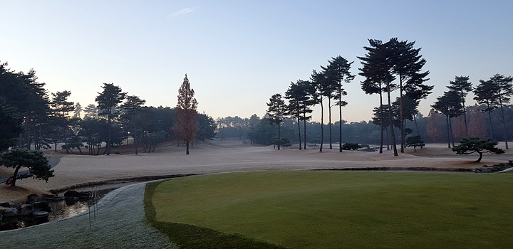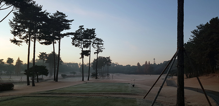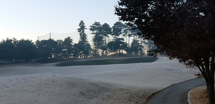 아침 첫티로 시작 했는데, 페어웨이와 그린에 습기로 인한 살얼음들이 남아 있었습니다.