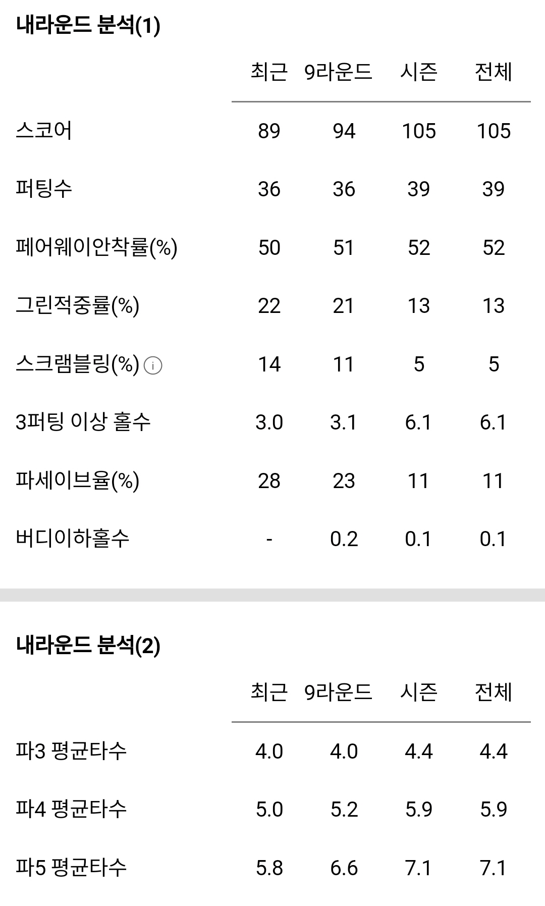 분명히 스윙이 많이 좋아졌고 그린적중률도 올라갔는데 스코어는 곤두박질