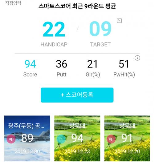 자주가는 상무대에서 80대를 기록하고 싶었는데 결국 실패하고 오늘 공군에서 89타 쳤습니다.