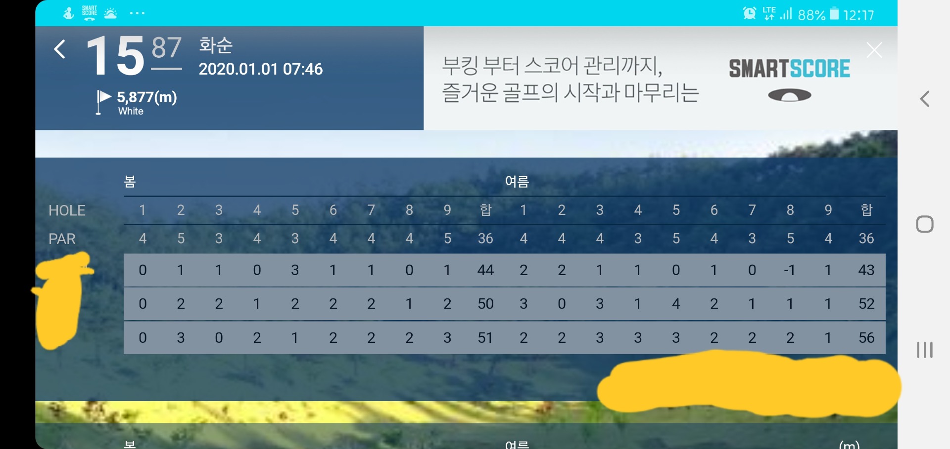 아! 스코어카드상 맨 위가 저입니다!