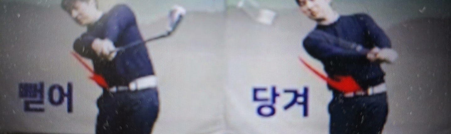 뻗고 당기는 느낌보단... 오른손 힌지를 잘 보시기 바랍니다. 김준년프로 스윙이 그런데. 백스윙때 만들어진 힌지를 유지하면서 때려야 뻗는 팔로우가 나오고 1번같은 모션이 나옵니다.(헤드무게와 스윙스피드 때문에 그렇습니다.)저를 포함한 아마추어 대부분이 당겨 느낌으로 치면 팔로우가 안펴집니다. 힌징을 유지하고 오른팔은 뻗으면서 당겨야 합니다.