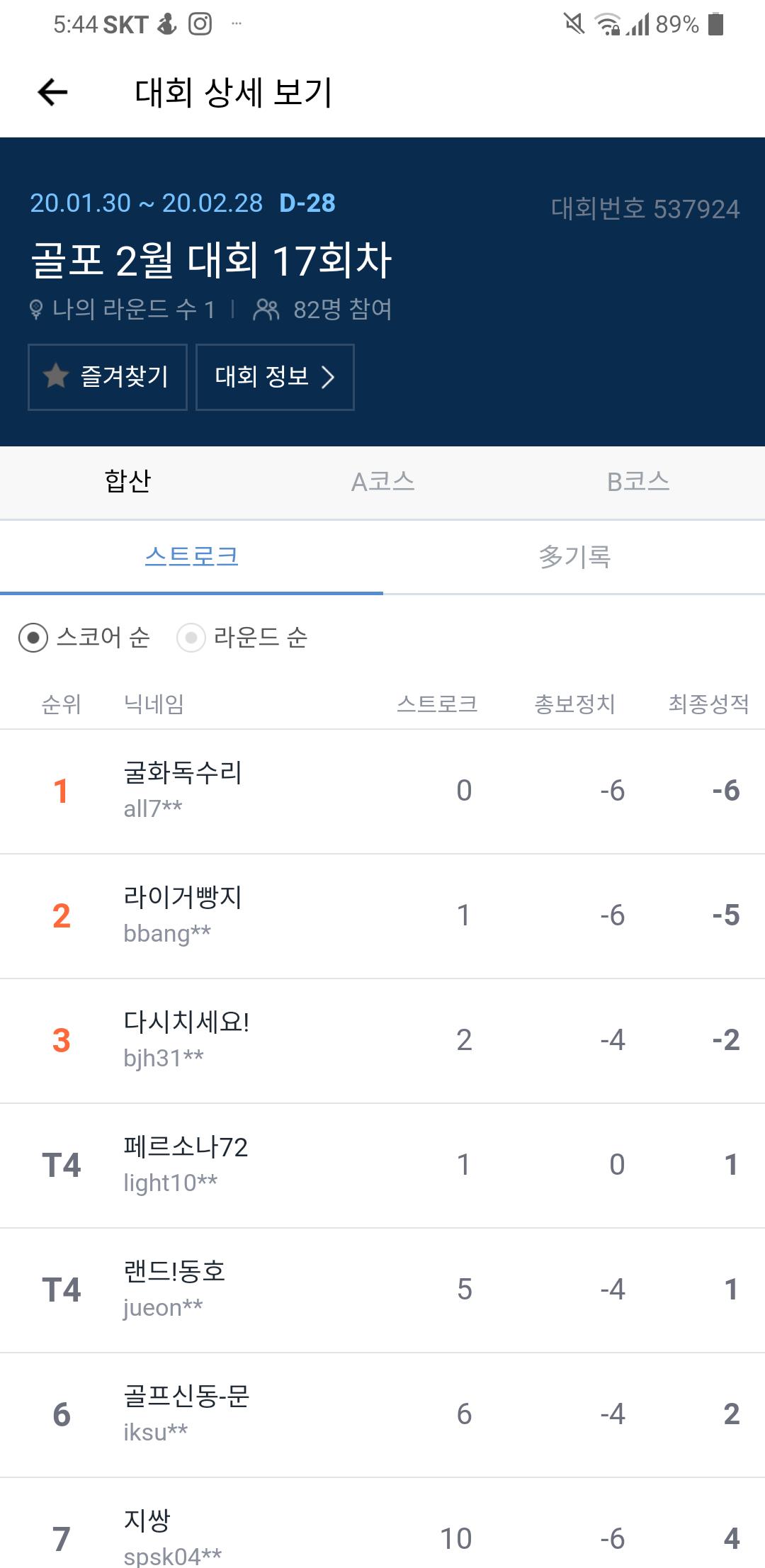 80명이 참여했고 A코스 B코스 다 치신분도 계시네요