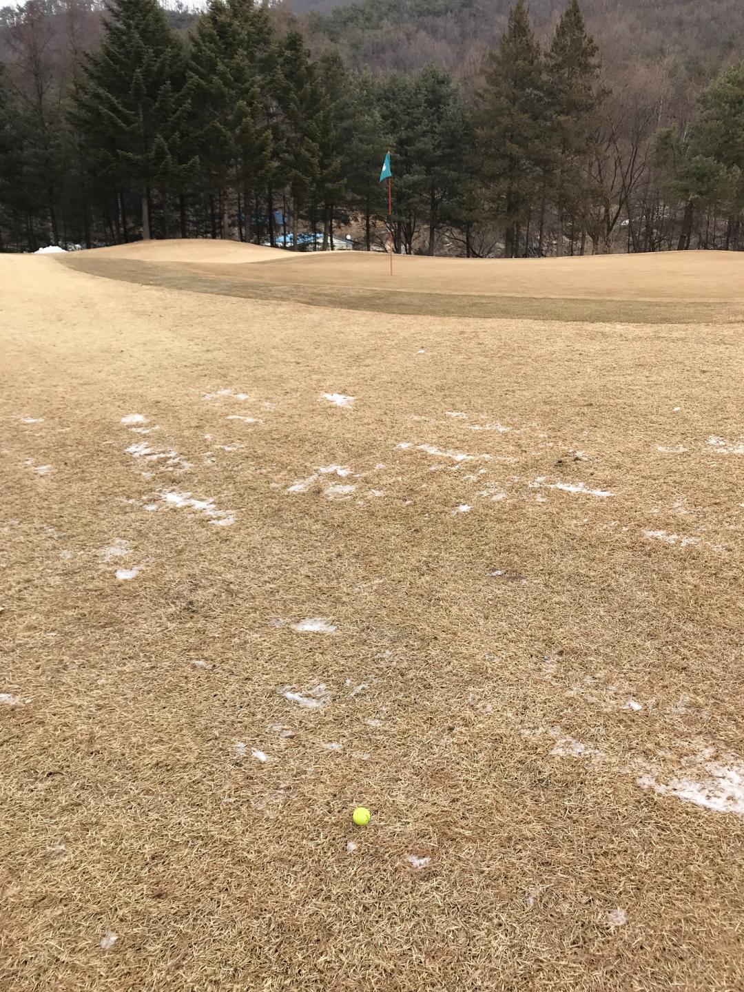 땅이얼어서 바운드도 멀리튀고 파4 한방에 올리면 기분 째지죠 ㅎㅎ 스코어야 망하던 말던 ㅋㅋ
