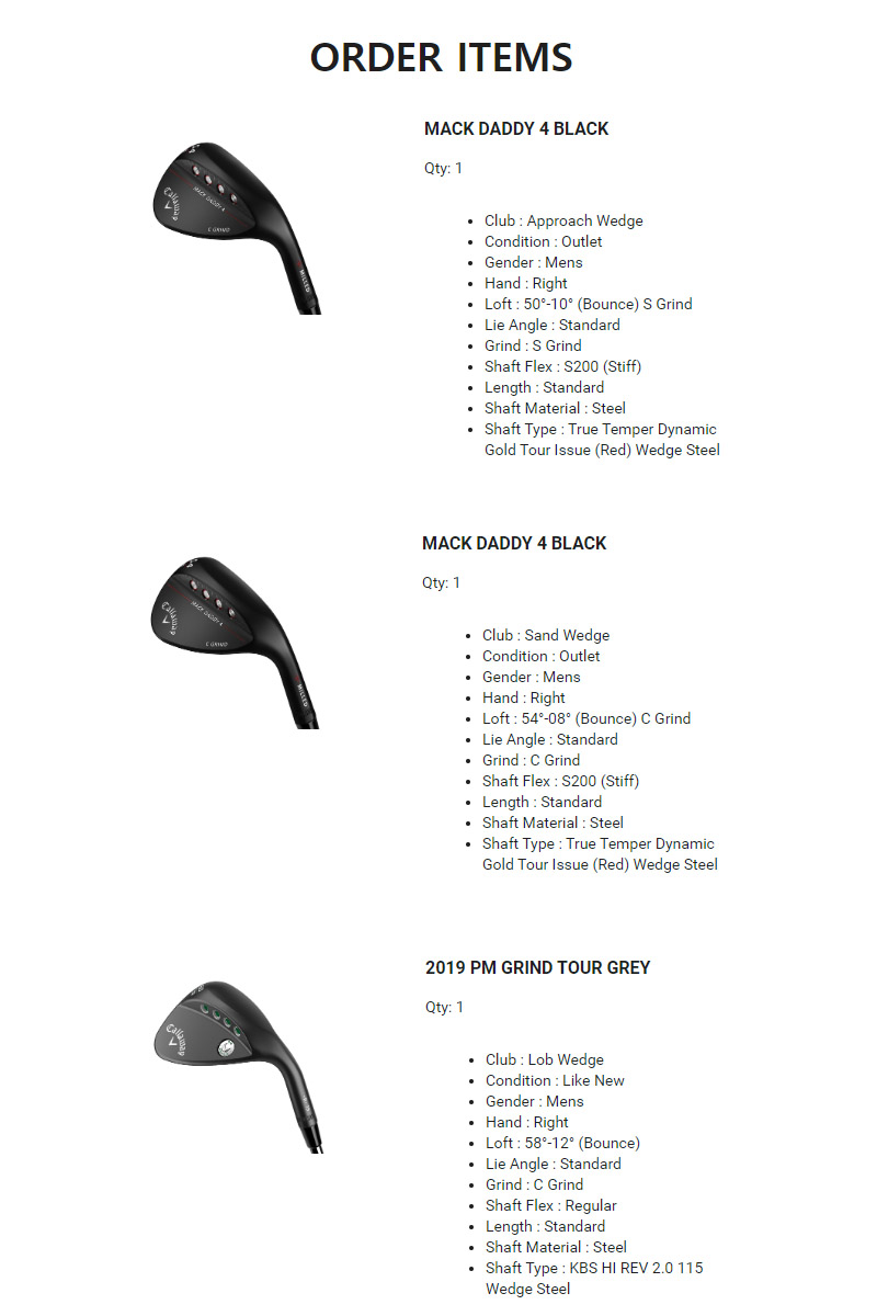 6개의 웨지를 클럽 구성 상 웨지 2개 혹은 3개로 했을 경우 맥스 10년까지도 쓰실 수 있겠네요~ㅎㅎ | ||