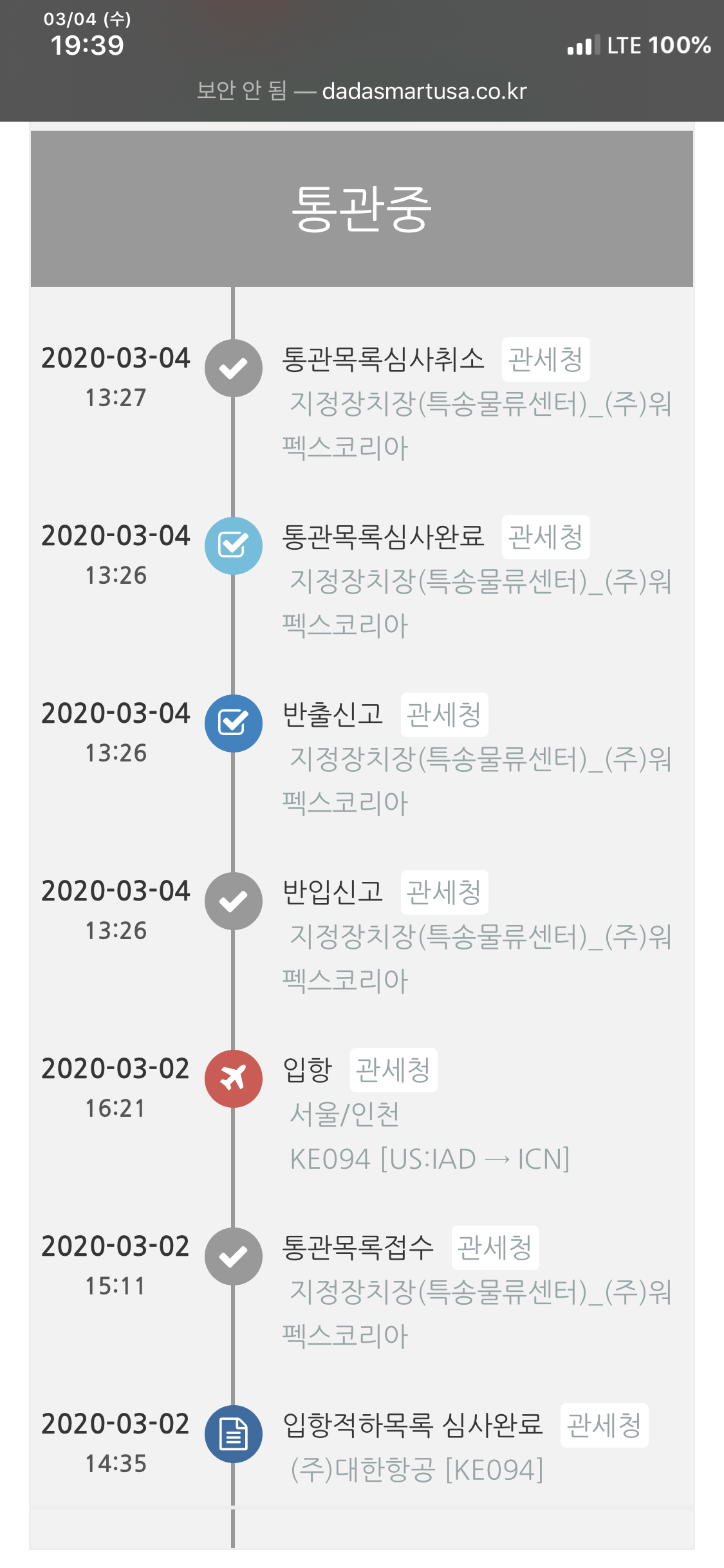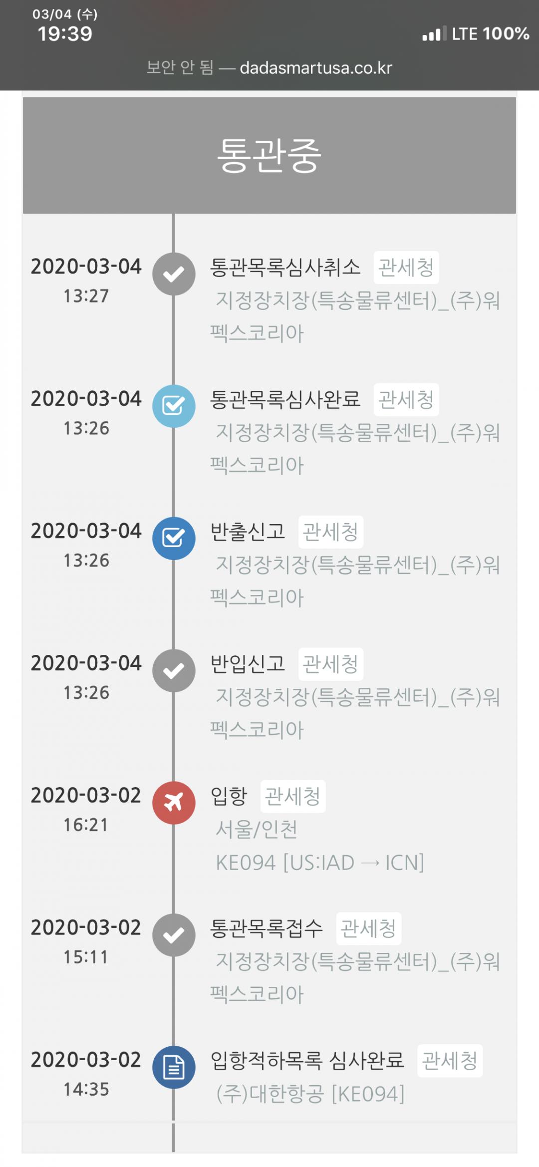 통관목록심사완료 후에 급 통관목록심사취소가 됐네요