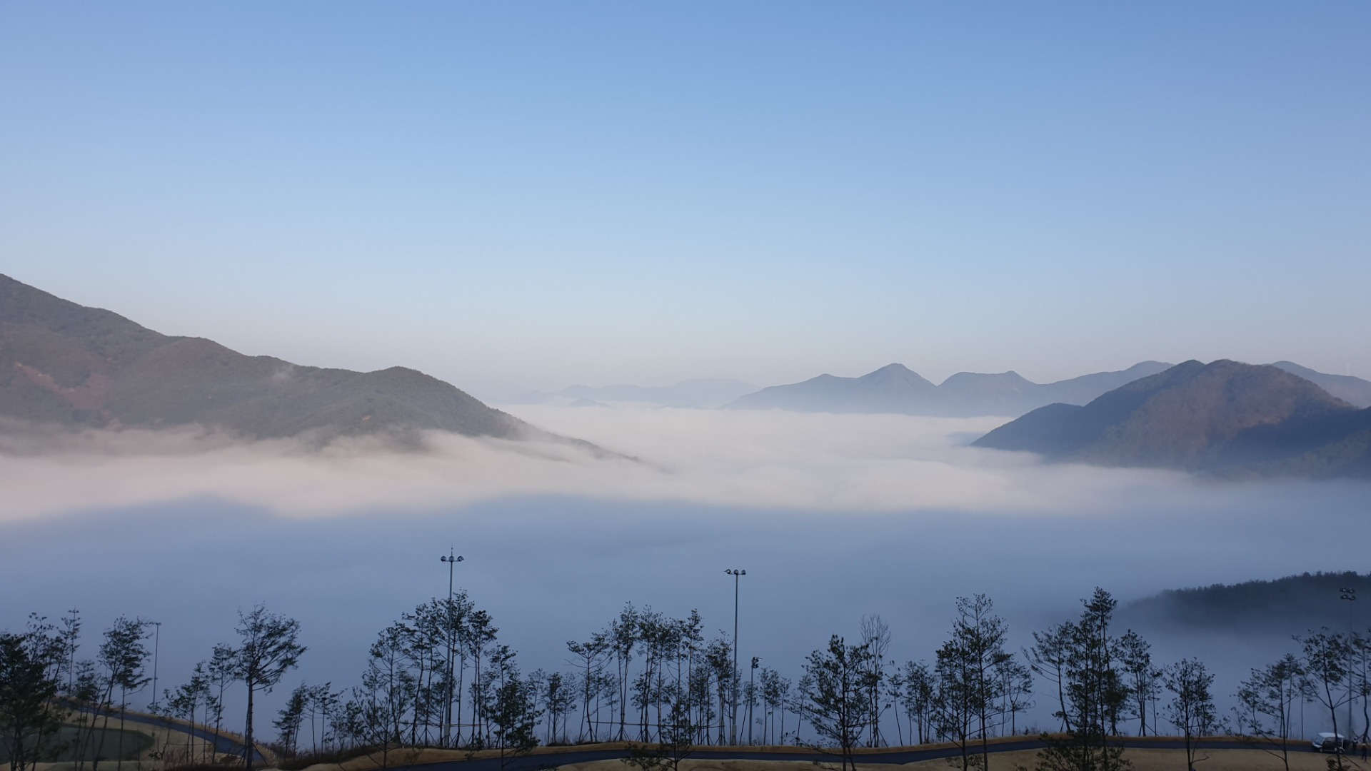 비상깜박이 켜고 안개를 뚫고 올라갔더니 이런 멋진 경치를 보여주더군요