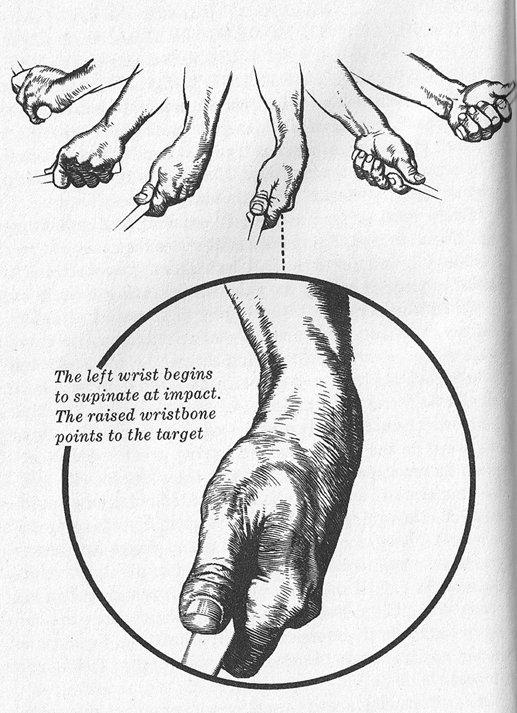 벤호건의 스윙교본책에 릴리스시 왼손의 손목모양..